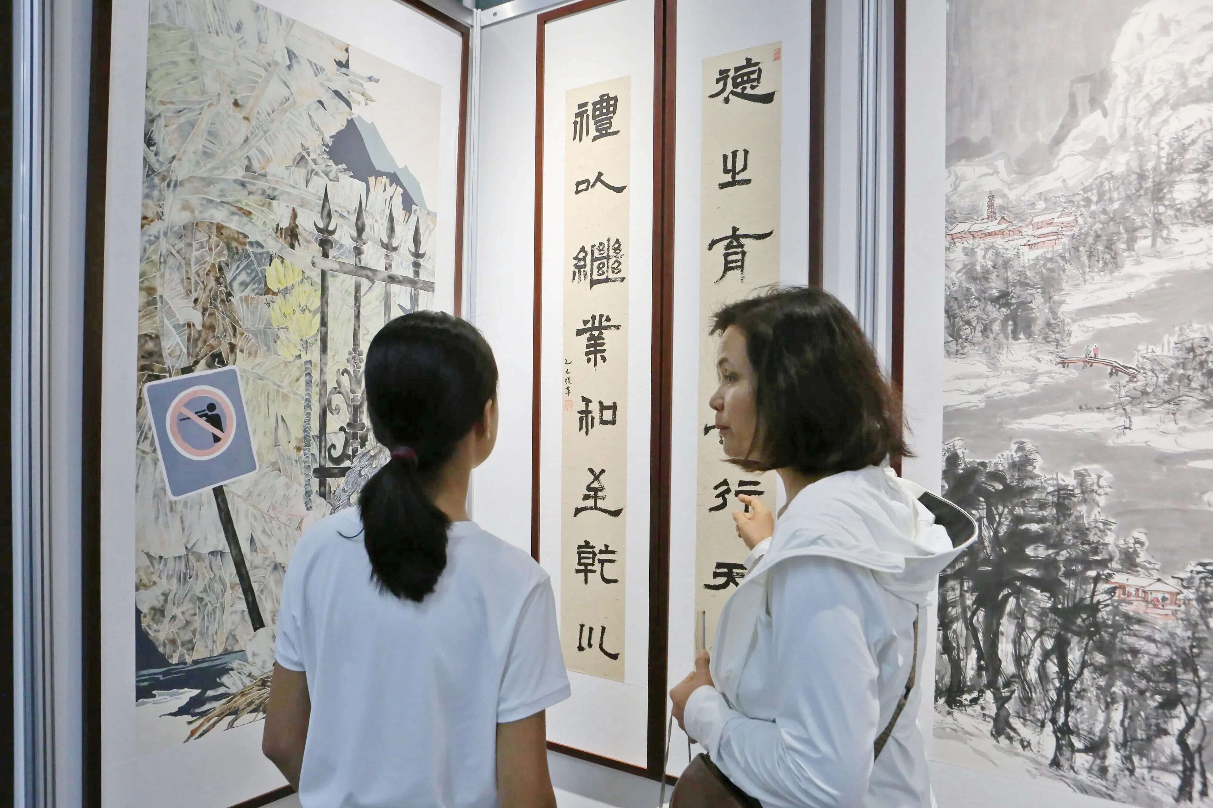 赵学庆介绍,此次展览以“铭记历史、珍爱和平”为主题,通过书画艺术展现烽火岁月和党的光辉历程,弘扬以爱国主义为核心的伟大民族精神,凝聚推进中国式现代化的强大精神力量。展出的书法作品诸体兼备,雄浑苍劲、隽永深沉。绘画作品丹青溢彩,定格英雄瞬间,勾勒山河盛景。篆刻作品以遒劲笔力和深邃内涵讴歌英雄的崇高与人民的力量。剪纸艺术与抗战主题融合,赋予红色文化新的生命力。