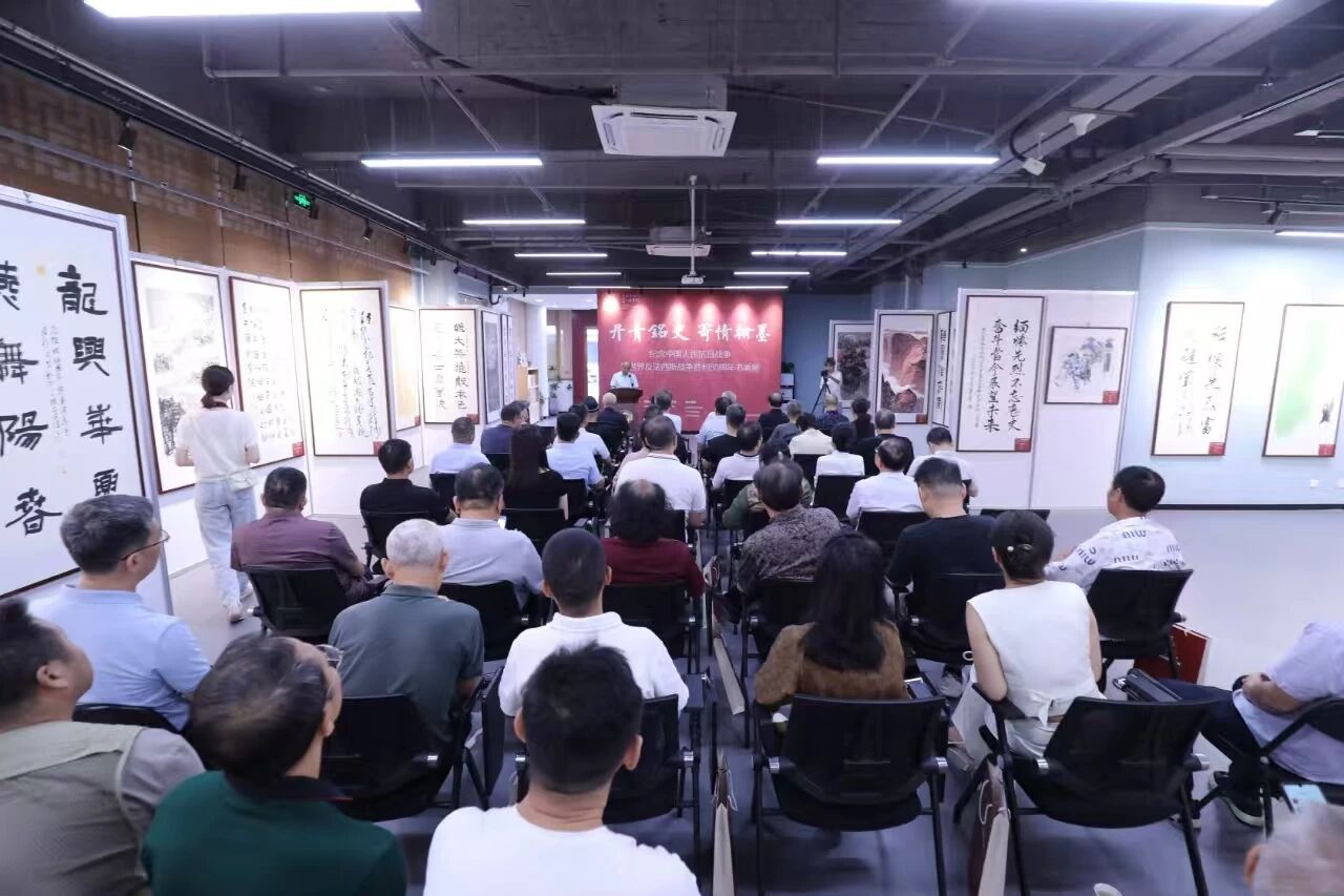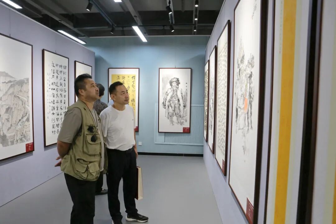 楚惠东致辞并宣布展览开幕。他表示,此次书画展以艺术的形式回顾历史、缅怀先烈、讴歌和平,参展的作者以深沉的爱国热忱和精湛的艺术造诣,以笔墨为心声,以丹青为史笔,或挥毫泼墨,书写抗战英雄的铮铮铁骨;或妙手丹青,描绘山河壮丽的和平图景。他们将满腔家国情怀倾注笔端,以笔墨描绘英雄的英姿,以色彩渲染山河的壮丽,以线条勾勒历史的脉络,用新时代的笔墨语言传承和平正义薪火。一幅幅力作,既是对抗战精神的立体诠释,更是对抗战精神图谱的征途回望,生动展现了中华民族百折不挠的意志和追求和平的信念。 展览现场气氛庄重而热烈,书画作品有序陈列,吸引了不少观众驻足凝望。记者看到,人物画中的英雄形象栩栩如生,山水作品墨色酣畅、气势恢宏,书法作品笔力遒劲,字字铿锵。参观者或低声交流,或静静品味,不时有人举起手机拍摄记录,艺术的感染力与历史的厚重感交织在一起,生动传递着对先烈的缅怀与对和平的珍视。