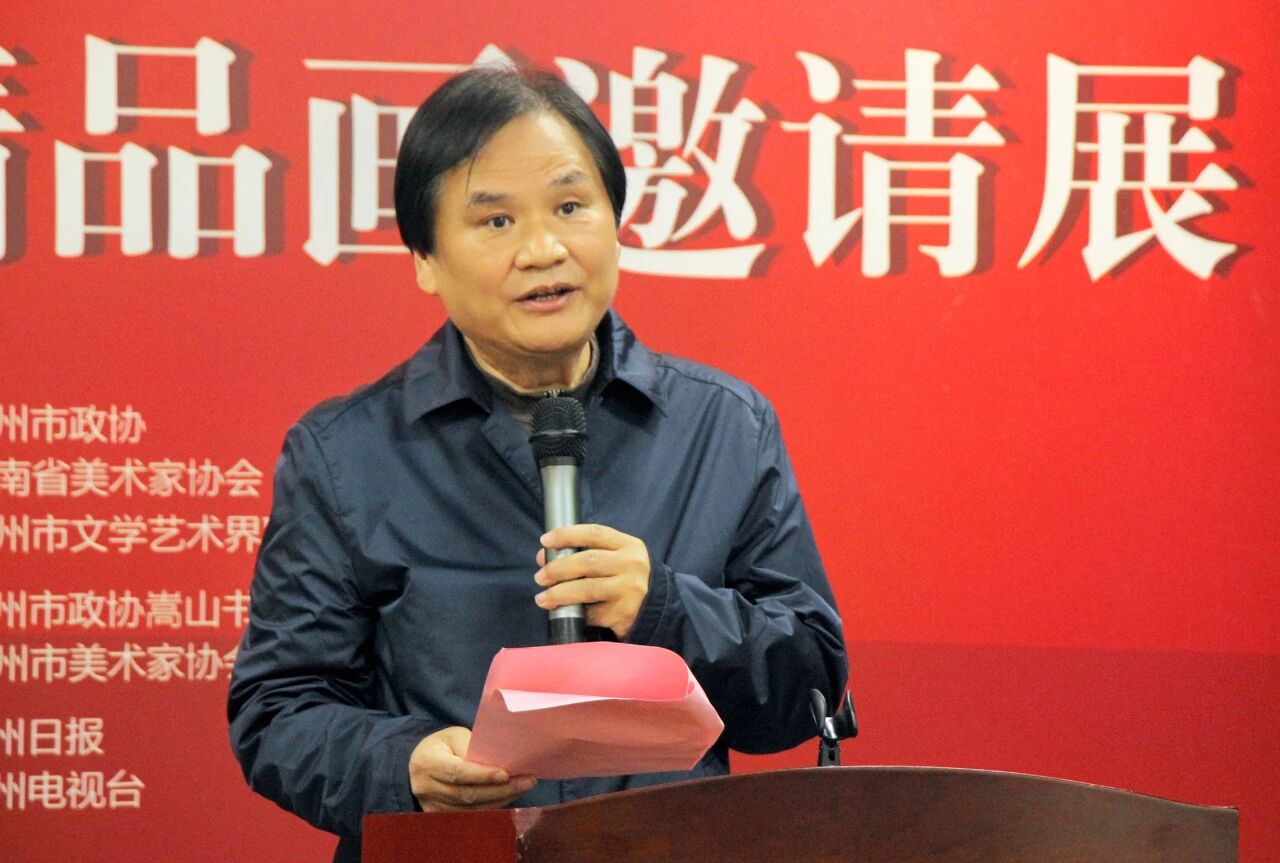 中国画学会副会长、河南省文联名誉主席、河南省美协名誉主席马国强,中国美协副主席、河南省美协主席刘杰,河南省美协副主席、河南省书画院院长桂行创,郑州市政协党组副书记、郑州市政协嵩山书画院院长王万鹏,郑州市政协副主席郝伟,郑州市政协党组成员、秘书长宋建国,郑州市政协嵩山书画院名誉院长钟海涛,郑州市政协副秘书长、办公室主任刘艳秋,河南省美协原副主席、河南省美术馆原馆长化建国,河南省美协副主席李健强、连俊州、武金勇、杨健生,河南省政协书画院王岩茹,郑州市金水区杜岭街道办事处党工委书记任拉拉,郑州市美协主席团部分成员,郑州市政协机关,各民主党派、工商联,区县政协委员代表出席开幕式。王万鹏宣布展览开幕。开幕式由钟海涛主持。