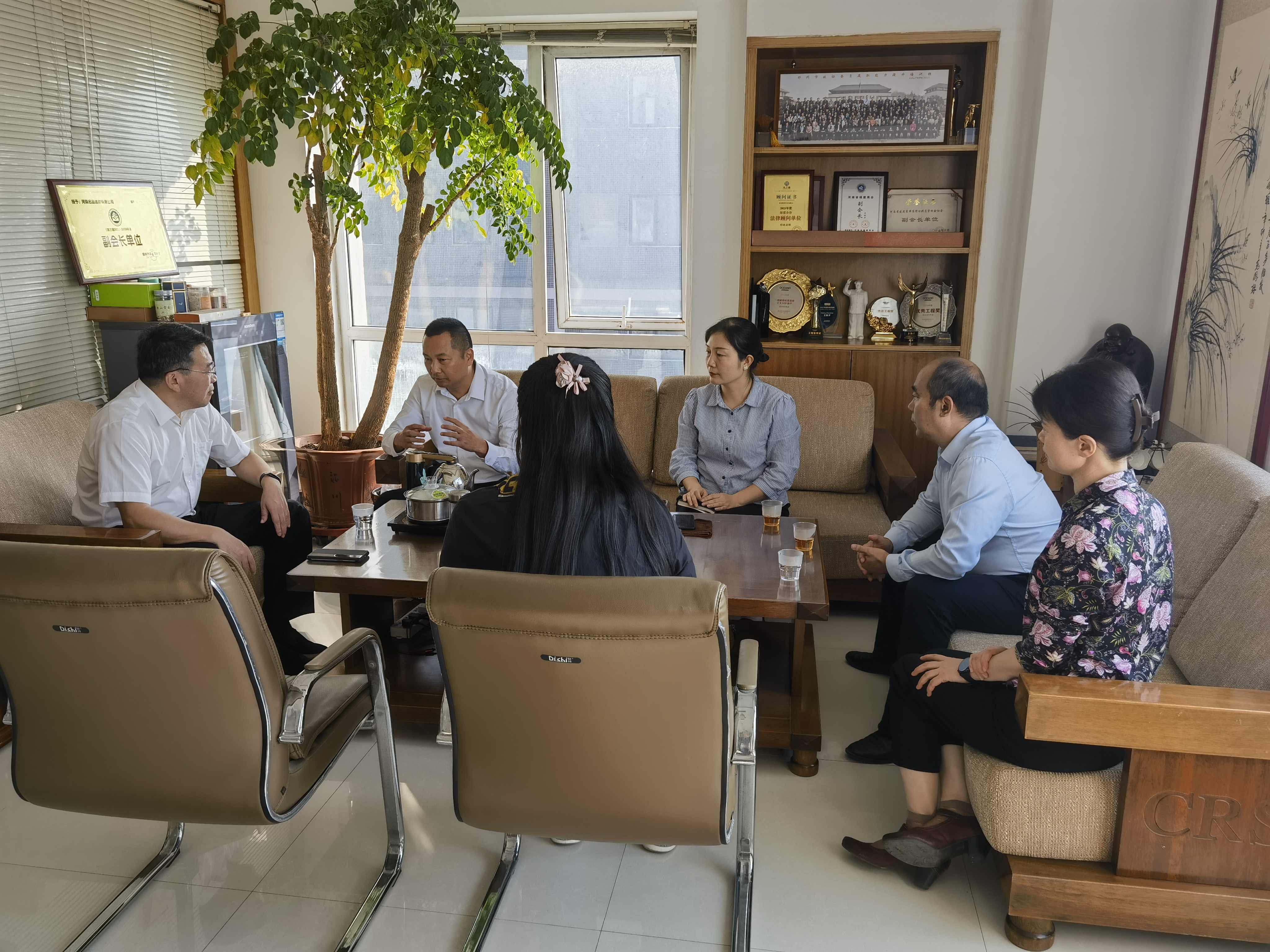 范建勋、赵学庆一行实地察看了位于郑东新区商都世贸中心王振开委员企业河南名品建材有限公司,听取企业的经营和发展情况,特别是企业在经营中面临的困难、未来发展规划和对政协工作的意见建议。
