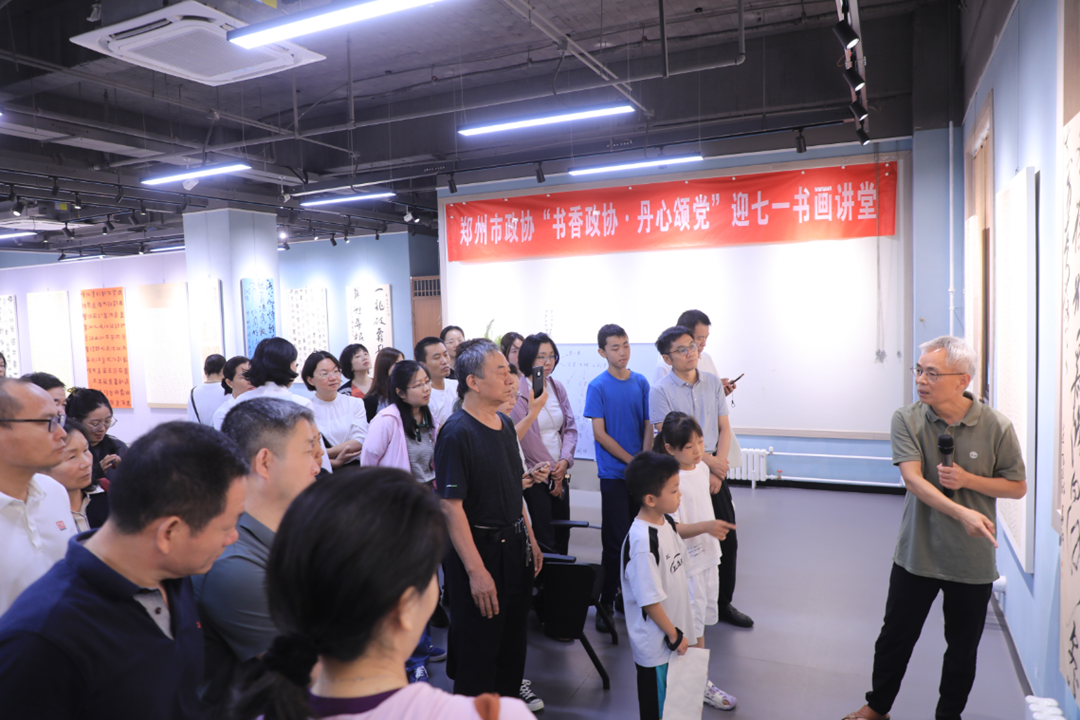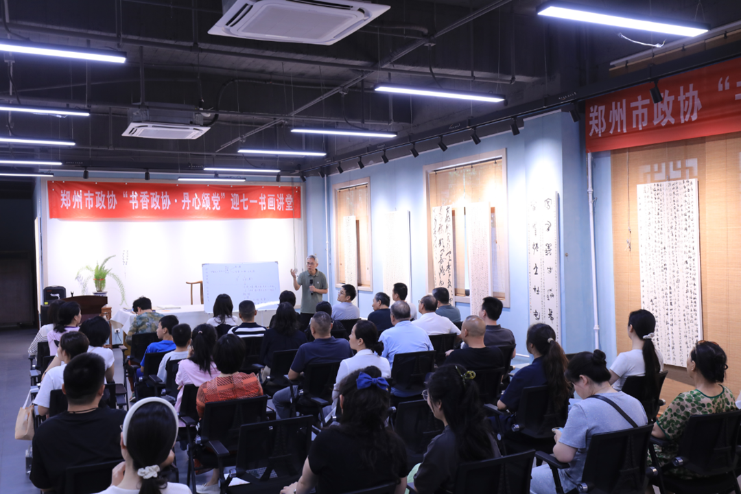 为弘扬中华优秀传统文化,庆祝中国共产党成立104周年,深入贯彻习近平总书记关于“书香中国”建设的重要指示精神。6月30日下午,郑州市政协“书香政协·丹心颂党”迎七一书画讲堂在市政协嵩山书画院展厅开讲。