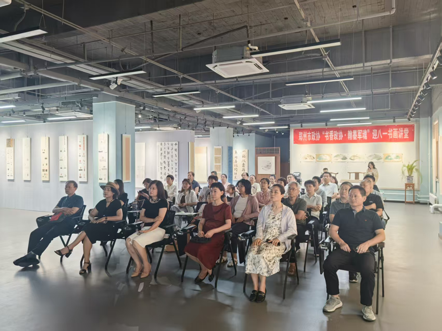 为迎接中国人民解放军建军98周年,以丹青笔墨致敬人民军队,弘扬伟大抗战精神与建军精神,凝聚新时代团结奋进力量,2025年7月29日下午,郑州市政协“书香政协·翰墨军魂”迎八一书画讲堂在市政协嵩山书画院展厅举行。