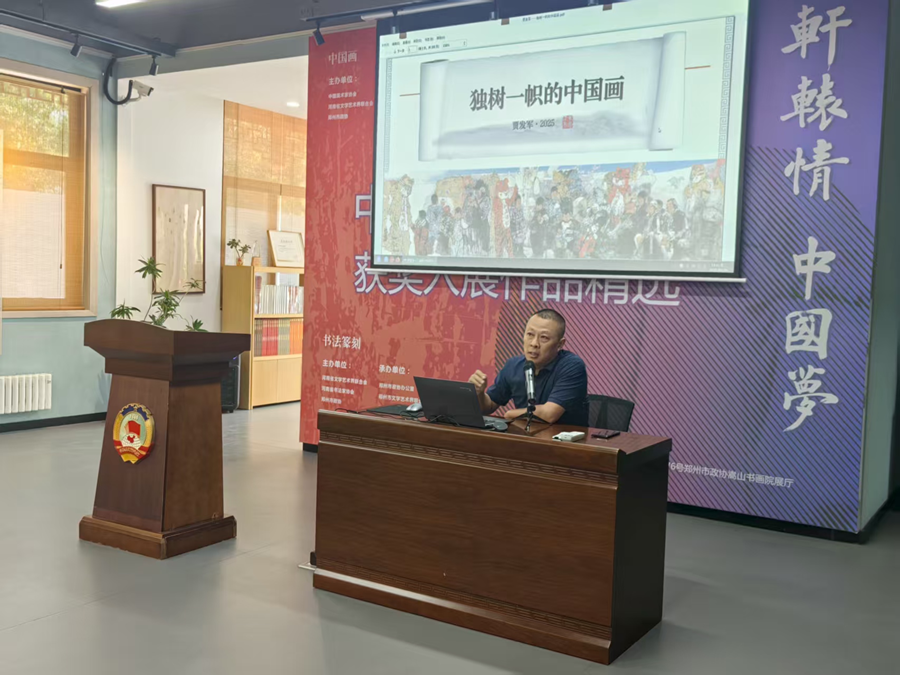 本次活动邀请了郑州市文联副主席、郑州市政协嵩山书画院执行院长贾发军老师以《独树一帜的中国画》为题,为大家带来了一场精彩的中国画艺术讲座。