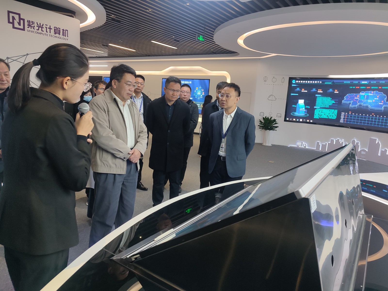 调研组一行在国家超级计算郑州中心参观控制中心,听取了中心运营情况和下一步工作计划;在新华三大数据技术有限公司、河南奇测电子科技有限公司参观企业展厅,深入企业生产车间,实地观摩产品工艺,与企业负责人交流,了解企业产业规模、产品特点和生产经营等方面情况,就企业存在问题、产业链发展、行业未来发展等进行了深入交流探讨。