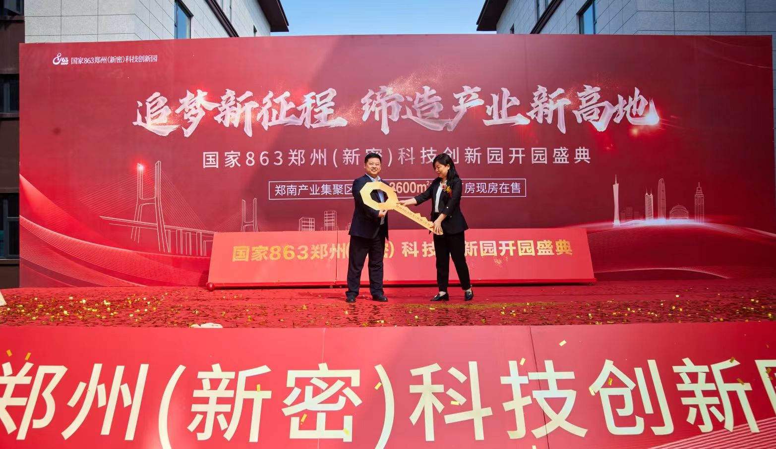 2023年10月10日,国家863郑州(新密)科技创新园北部工业区开园仪式隆重举行,市政协副主席,九三学社河南省委会副主委、郑州市委会主委李秋红,市政协教科卫体委员会主任王得华出席仪式。郑州市重点项目建设推进中心、新密市政府、市政协等相关领导一同出席。