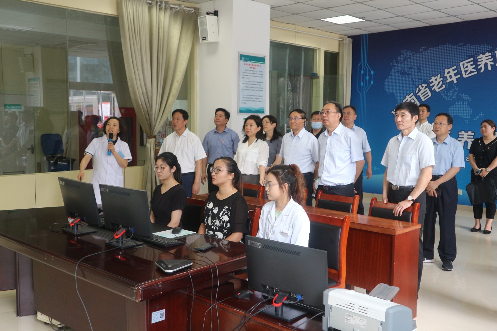 7月31日上午,江苏省政协副主席胡刚一行9人到我市围绕“建设老年健康服务体系”专题进行考察调研,河南省政协教科卫体委员会主任胡广坤、郑州市政协副主席李秋红陪同考察。图为考察现场。